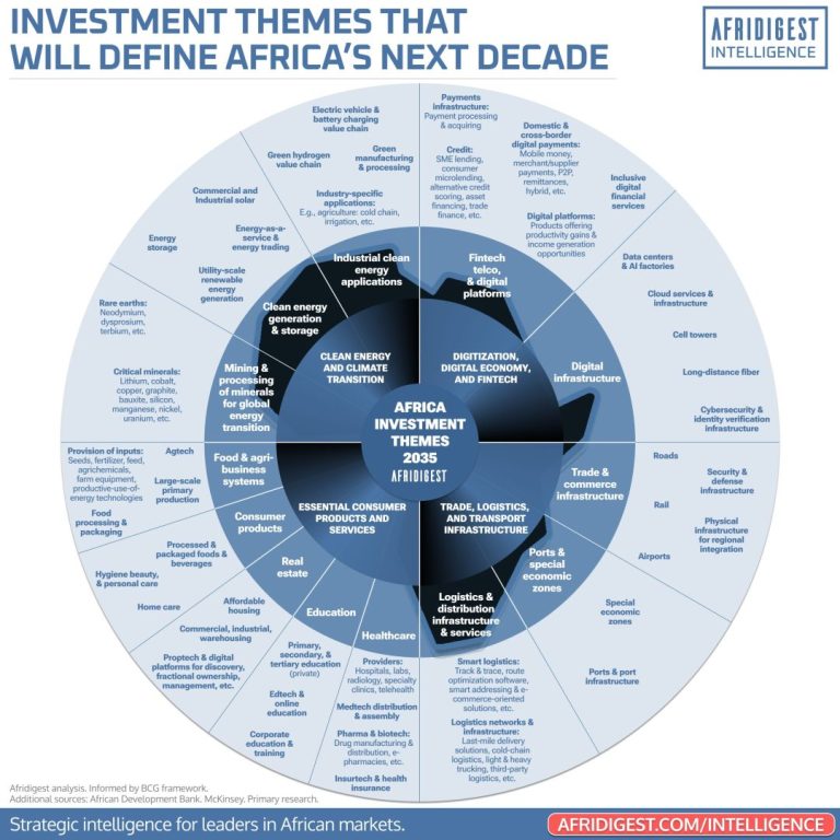 - Digitization, digital economy, and fintech — The continent is still in the early stages of a digital supercycle that will touch every sphere of economic activity, presenting generational investment opportunities and the potential for immense productivity gains.
